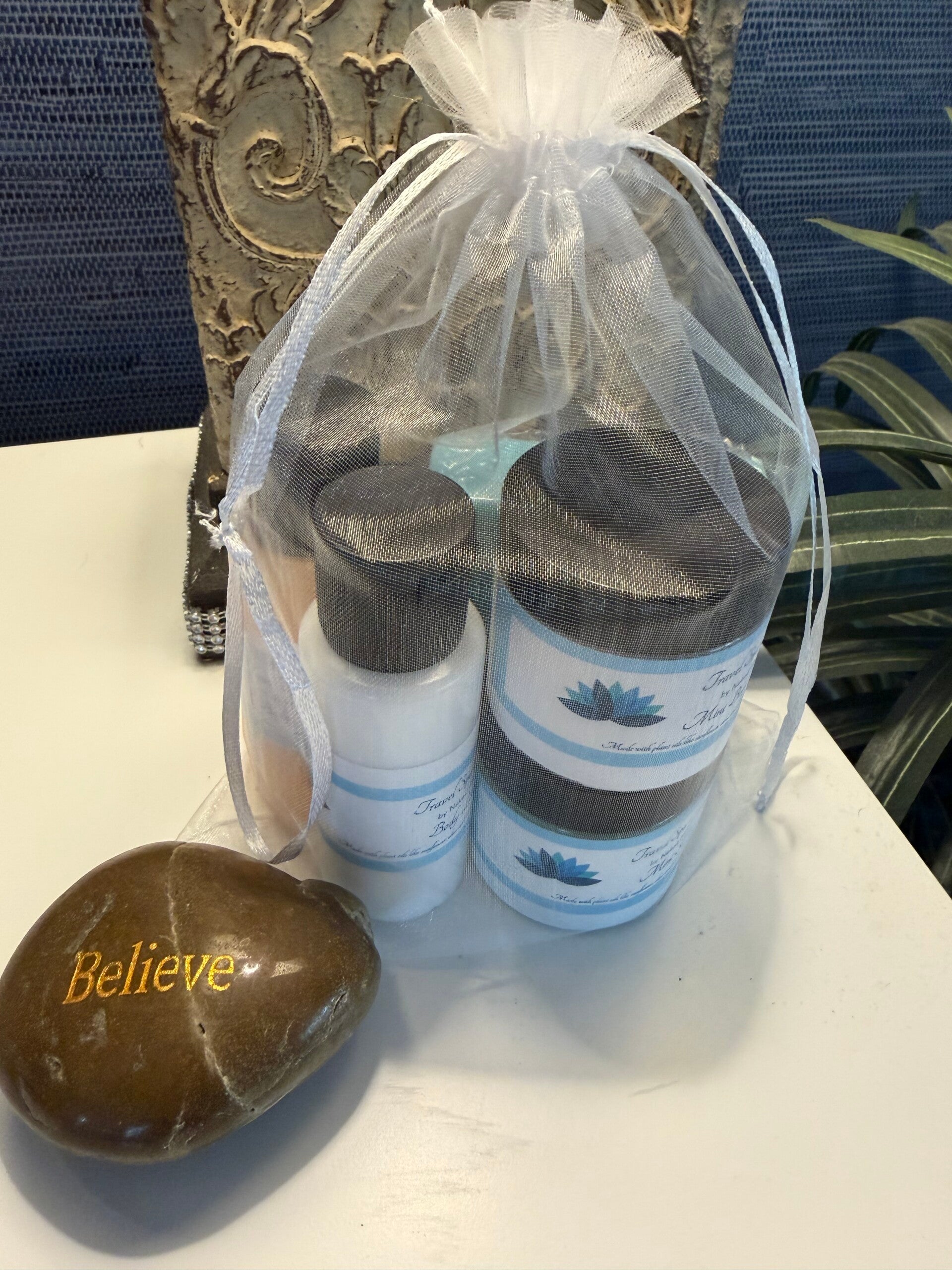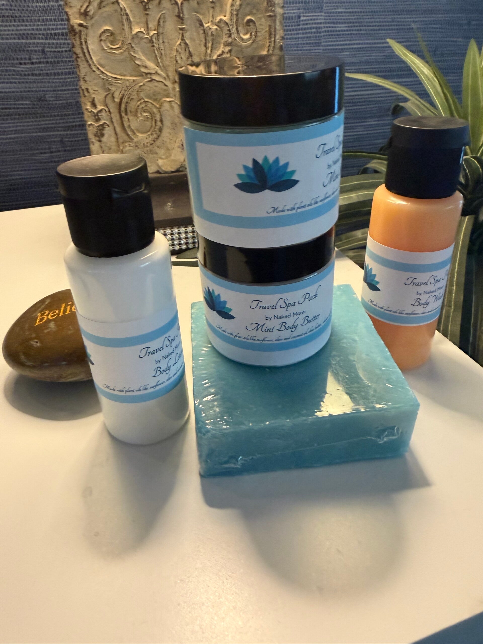 Indulge in relaxation wherever you go with this thoughtfully curated travel spa kit. It features a creamy body wash that gently cleanses and refreshes your skin, paired with a luxury shea soap for a nourishing, spa-like experience. The thick lotion deeply hydrates, leaving your skin soft and silky, while the mini body butter provides lasting moisture in a convenient size. Complete your routine with the mini body & foot scrub, perfect for exfoliating and revitalizing tired skin. Compact and beautifully packaged, this kit is designed to pamper you from head to toe on every adventure. Comes in scented or unscented. Soap of your choosing!